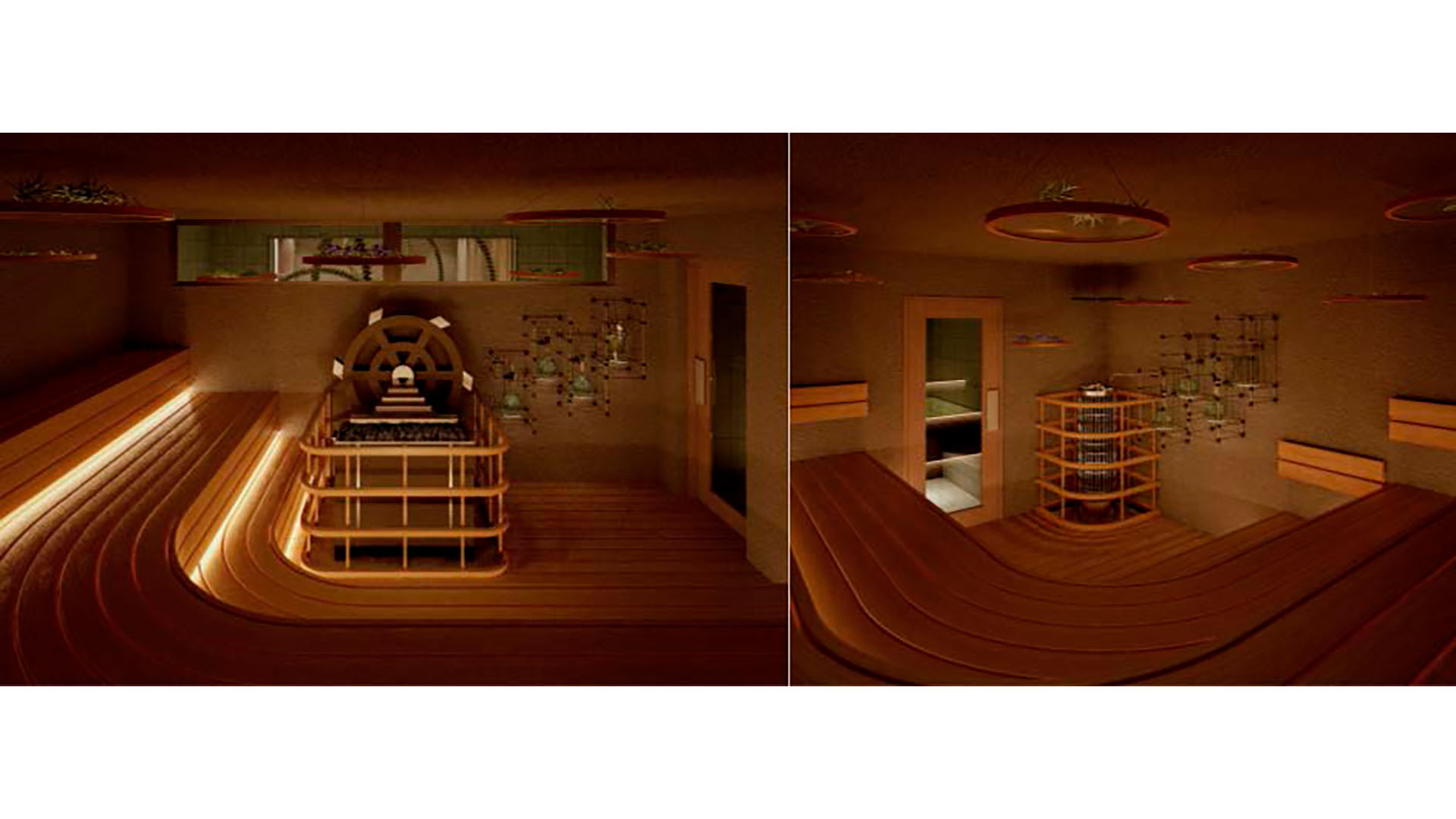 写真左が「水車サウナ」、右が「レッドシダーサウナ」