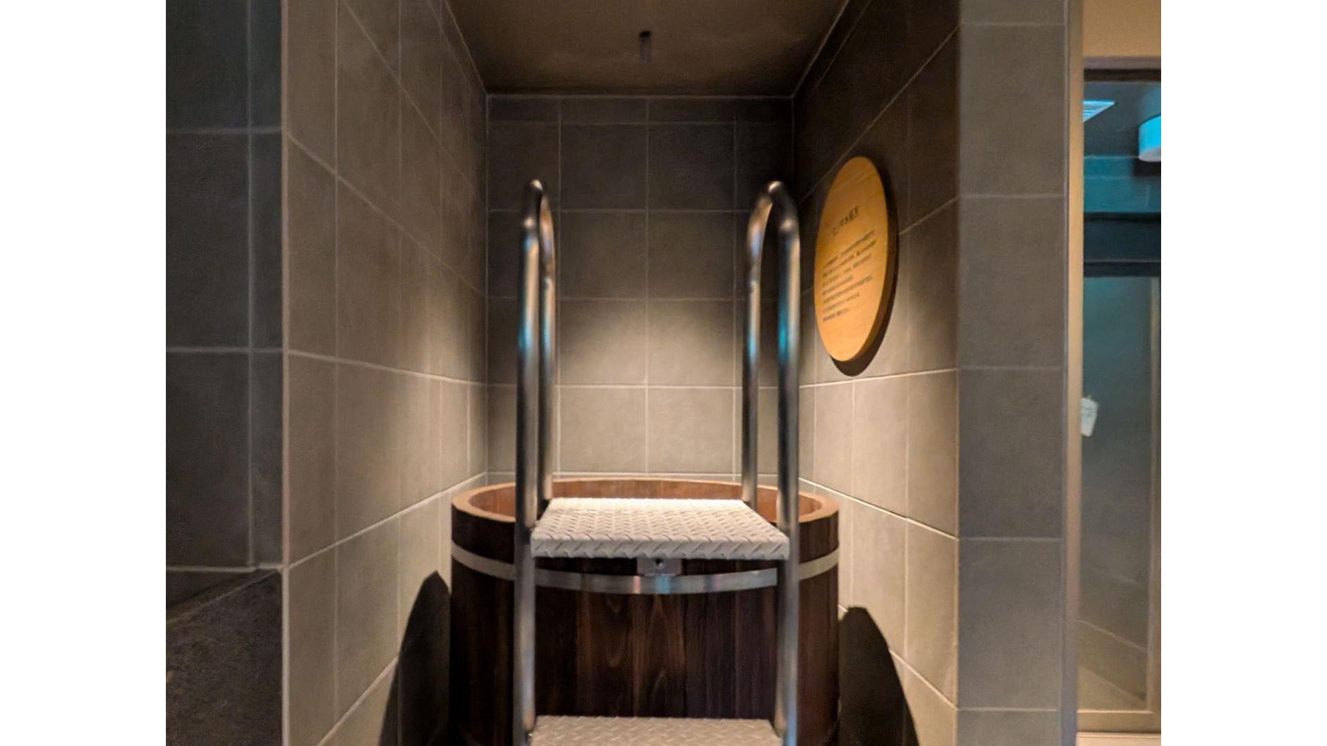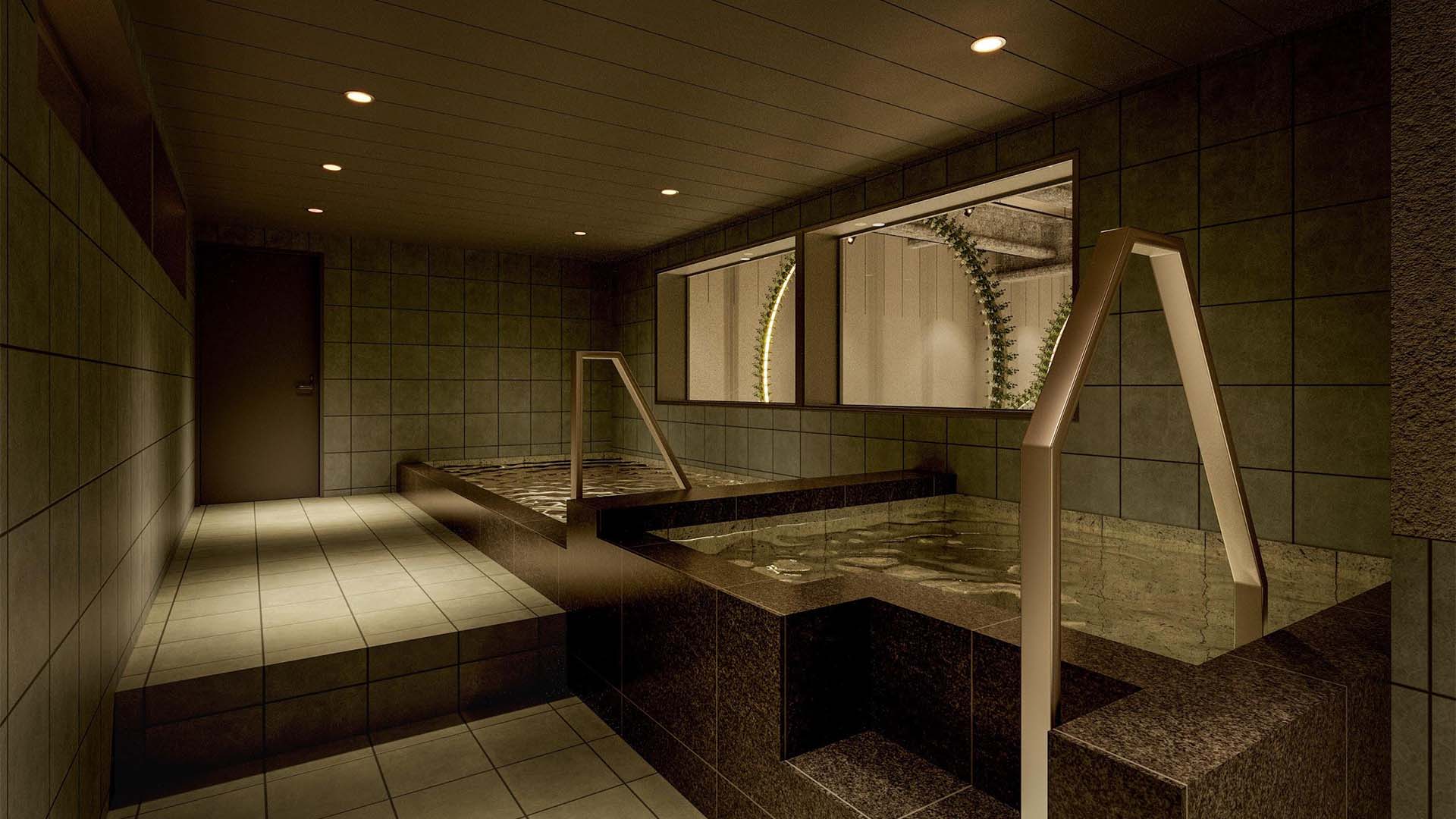 男性浴室には、地下水を引き上げたヒノキの水風呂も用意