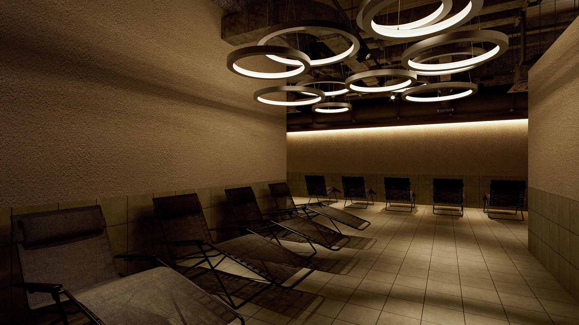 座って入る岩盤浴。低温のため、じっくり、ゆっくり体を温められる