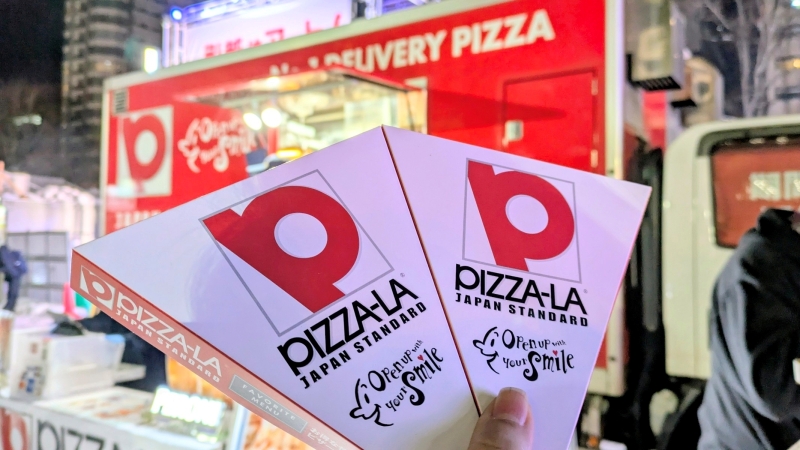 食べ歩きにぴったりのワンハンド仕様のピザ