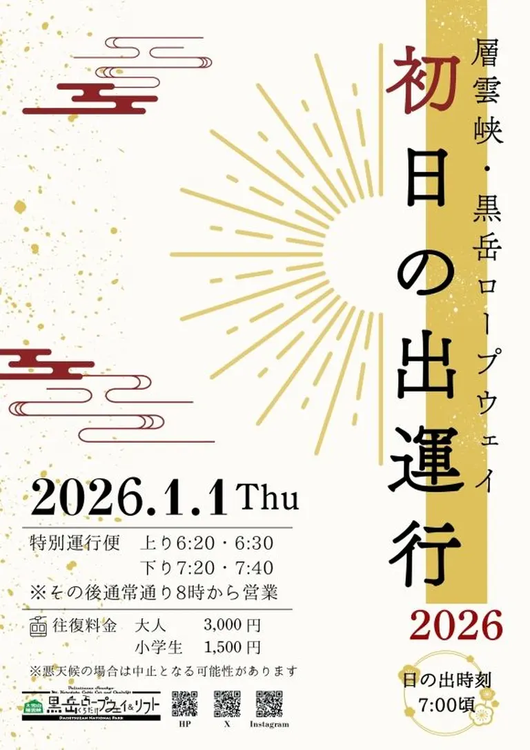 Sounkyo Kurodake Ropeway New Year's Sunrise Operation 2026